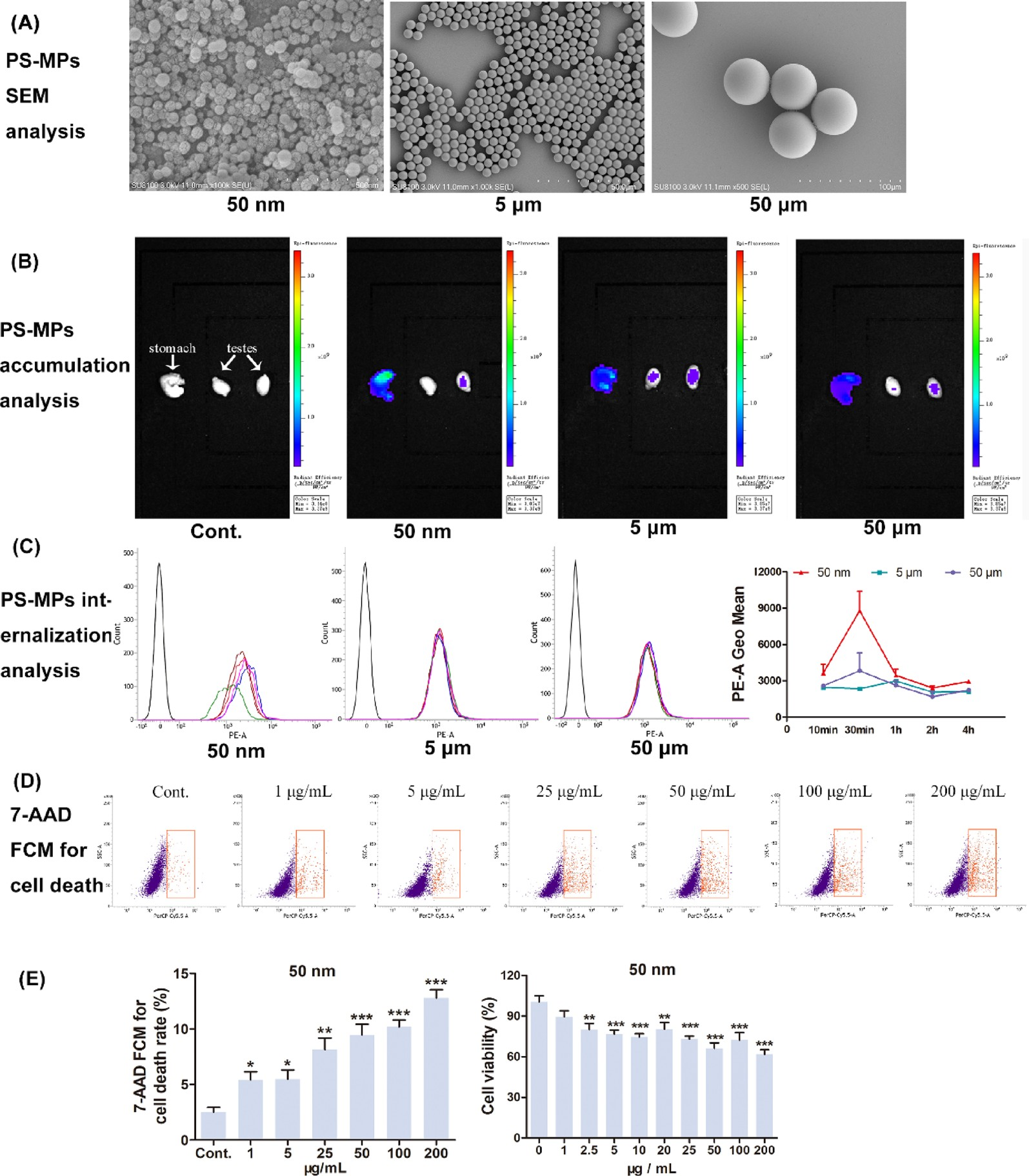 動物實驗(小鼠)顯示,PS微塑料會降低精子活力、增加畸形率,并引發睪丸細胞的自噬(自我消化)和凋亡(程序性死亡)。