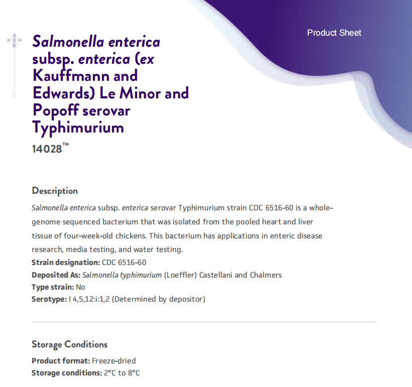 首頁 > 產品中心 > 菌株 > 原代菌株 > 腸炎沙門氏菌